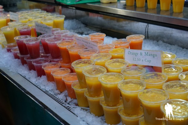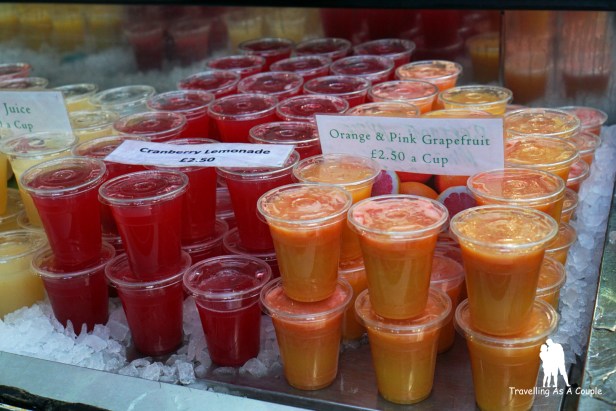 เดินชิมอาหารจนคอแห้งแล้ว ก็มีน้ำผลไม้คั้นสดให้เลือก ถ้าไปตอนหน้าหนาวจะมีเครื่องดื่มแบบอุ่นด้วย เราชอบ Orange + Pink Grapefruit มาก เปรี้ยวๆหวานๆ กำลังดี