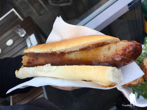 ไส้กรอกเป็นอีกอย่างที่ชอบมาก จัดไปคนละอันจะได้ไม่แย่งกัน คือรสชาติไส้กรอกคือดีงาม กินเมืองไทยไม่ค่อยเจอรสชาติแบบนี้ แต่เรากินขนมปังไม่หมดชิ้นนะ จุกเกิน