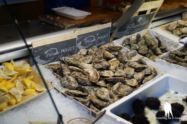 Seafood ที่ตลาดนี้ได้รับความนิยมมาก โดยเฉพาะหอยนางรม ร้านเค้าจะแกะสดๆตรงนั้นเลย แล้วจะมีมะนาว กับน้ำจิ้มให้ แต่ไม่ใช่น้ำจิ้มทะเลแซ่บๆแบบบ้านเรานะ ใครอยากได้น้ำจิ้มทะเลแซ่บๆ อาจจะต้องพกไปจากเมืองไทย