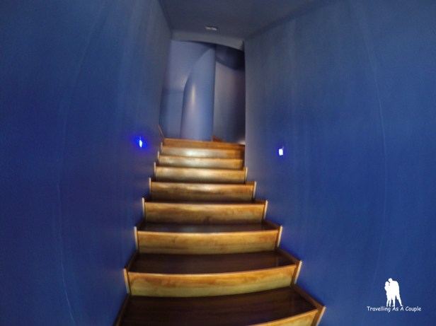 ทางลงของ Ithaa Undersea Restaurant จะเป็นบันไดวนลงไปที่ปล่องใต้ทะเล