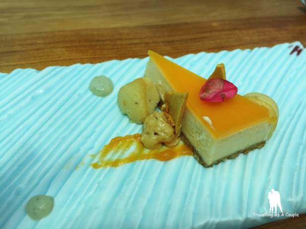 ปิดท้ายด้วยของหวานเป็นชีสเค้กฟักทอง ฟังตอนแรกก็คิดว่ามันเข้ากันเหรอ มันจะอร่อยเหรอ … พอลองกิน เออ อร่อยวุ๊ย ไม่น่าเชื่อว่ามันจะเข้ากัน หอมครีมชีส และก็ไม่หวานมากเกินไป อยากจะขอต่ออีกจานเลย
