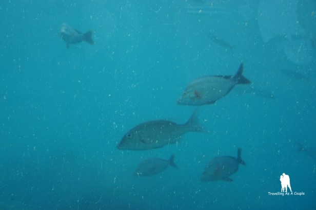 วันที่ไปฟ้าฝนเป็นใจมาก วันก่อนหน้าที่จะไปกินมีฝนตก ทำให้ฟ้าปิด แต่พอวันที่เราไปอากาศสดใส ฟ้าเปิด แดดแรง น้ำทะเลใส เห็นตัวปลาแหวกว่ายอย่างชัดเจน โชคดีจริงๆ