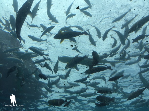 อยากบอกว่าชอบมาก!!! เหมือนได้นั่งกินข้าวอยู่ในอะควาเรี่ยม มีฝูงปลาเยอะแยะมากมายว่ายล้อมเราอยู่ แต่ที่นี่อาจจะเปิดมานาน บางที่นั่งกระจกขุ่นเชียว น่าจะให้คนลงไปเช็ดซะหน่อย :p