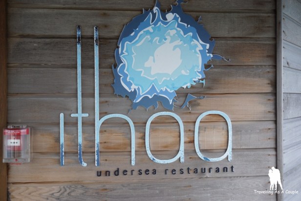 Ithaa Undersea Restaurant จะอยู่ฝั่ง Main Island โดยต้องเดินผ่านห้องอาหาร Sunset Bar & Grill เข้าไป โดยตัวห้องอาหารจะอยู่ลึกลงไปในทะลประมาณ 5 เมตร ซึ่งถ้าเราอยู่ด้านบนจะสามารถมองลงไปเห็นห้องอาหารได้แบบลางๆ เวลาเปิดจะให้เข้าพร้อมกันคือประมาณ 12.30 น. ถ้ามาถึงก่อนก็จะไปนั่งเล่นที่ Sunset Bar & Grill ก่อนก็ได้