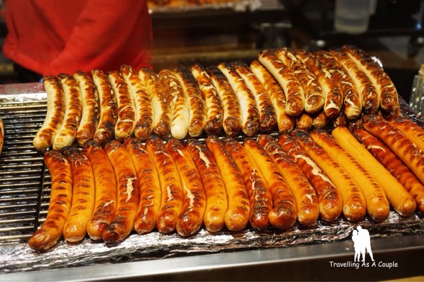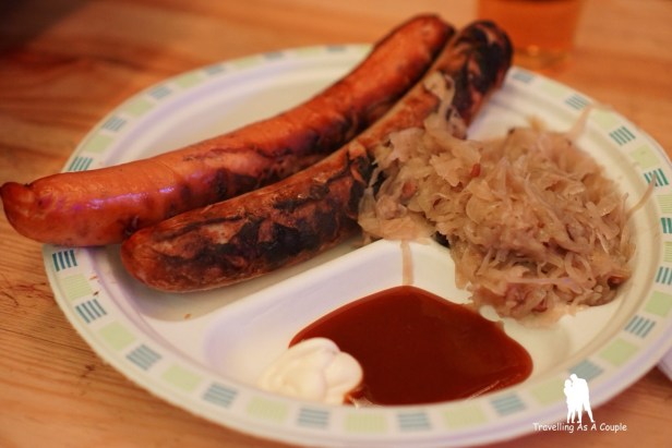 อาหารที่ขายในโรงเบียร์ก็จะเป็นไก่ย่าง ไส้กรอกย่าง กินคู่กับผักดอง หรือ กินเป็นฮอทดอกก็ได้ ไส้กรอกย่างหอมมาก ด้วยความที่กลัวอิ่ม ถ้ากินขนมปังเลยสั่งแต่ไส้กรอกอย่างเดียวมากินคู่กับเบียร์