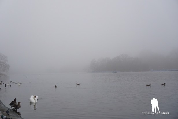บรรยากาศ Hyde Park ตอนกลางวันที่ไป วันนั้นหมอกลงหนามากกก แทบจะมองไม่เห็นข้างหน้า แต่ก็ได้บรรยากาศดีไปอีกแบบ เดินจับมือกันไป เดินชมนกชมไม้ไป มีคนมานั่งตกปลา ตกแบบจริงจังเลย นั่งเอากาแฟ เอาเบียร์ มาจิบรอปลากินเหยื่อ