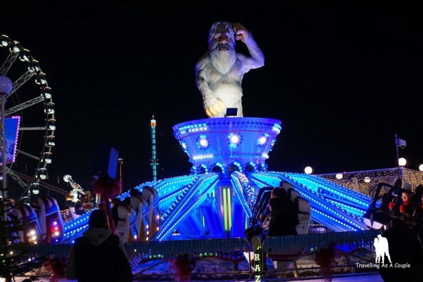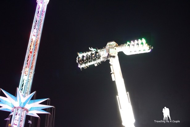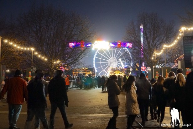 งานมีตั้งหลายวัน มันต้องมีซักวันที่ฟ้าเปิดซินะ วันรุ่งขึ้นมาใหม่อีกค่ะ และก็ไม่ผิดหวัง ฟ้าเปิดเป็นใจ ระหว่างทางเดินมาที่งาน Winter Wonderland ก็เห็นเคร่ืื่องเล่นสูงปรี๊ด ส่องแสงสว่างมาแต่ไกล