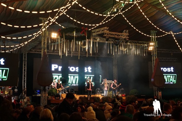 ถ้านึกถึง Bavarian Style บ้านเราจะนึกถึงแนวๆ โรงเบียร์เยอรมัน ที่นี่เค้าก็จัดไว้เป็น Indoor ใหญ่ แบบโรงเบียร์ที่เราเคยไปกินเลย กิน Indoor ก็ดีตรงที่ให้เราหลบลมหนาวได้ ตรงกลางจะเป็นที่ตั้ิงเวทีขนาดใหญ่ มีทั้งดนตรีและการแสดงผลัดเปลี่ยนกันมาเล่นตลอดงาน