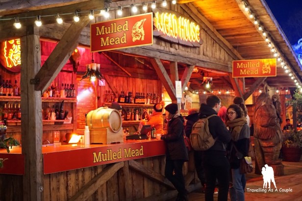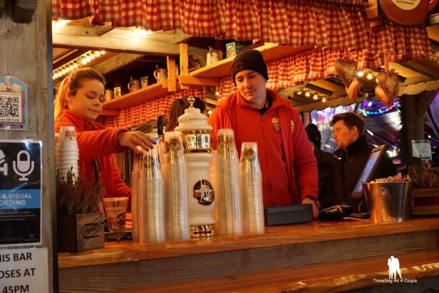 ด้านในซ้ายขวาของโรงเบียร์ก็จะเป็นที่ขายอาหารและเครื่องดิ่มให้เราเลือก จะเป็นเบียร์เย็นๆ หรือจะเป็นไวน์อุ่นๆ ก็มีขาย
