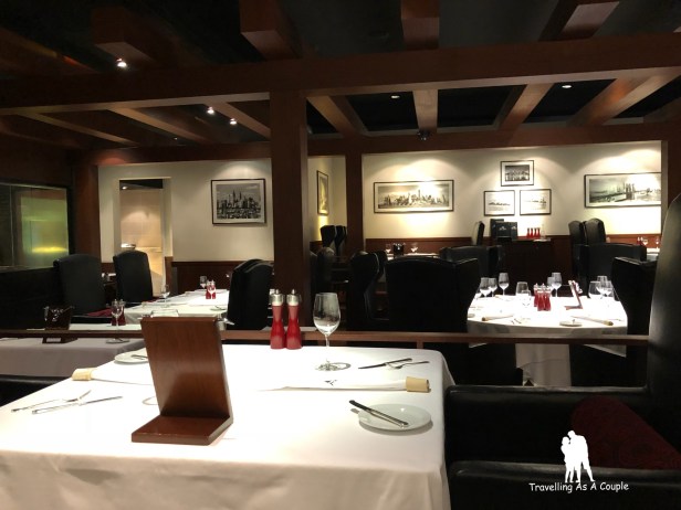 ถ้าจองไว้ พนักงานจะพามานั่งที่โต๊ะ ป้ายจองโต๊ะ มีความเก๋มาก เป็นป้ายไม้ที่มีหัวกระทิงสีเงิน ด้านล่างจะเขียนชื่อแขกที่จองโต๊ะไว้ แต่ละโต๊ะจะมีพนักงานคอยให้บริการแบบเป็นโซนๆไป