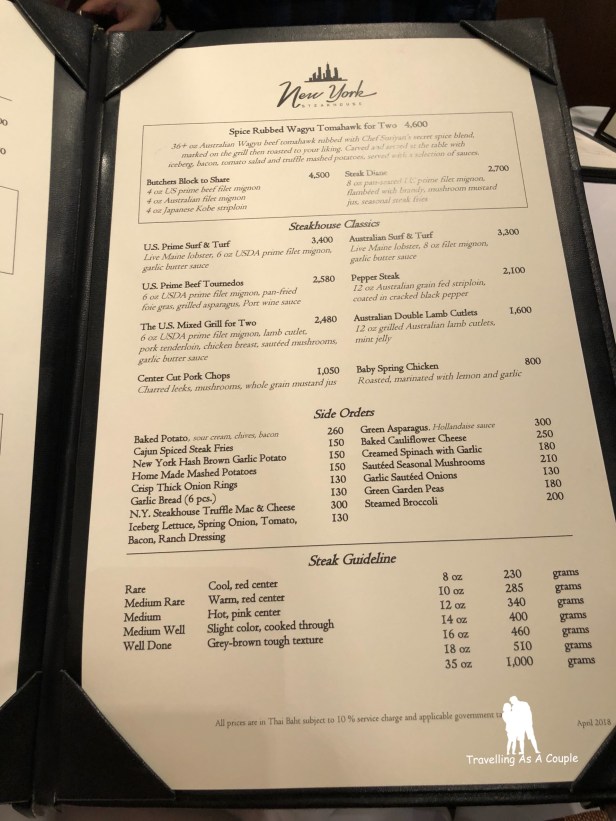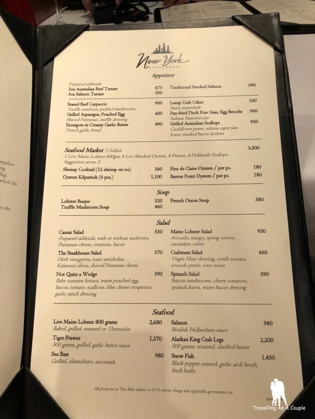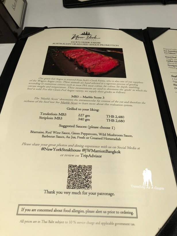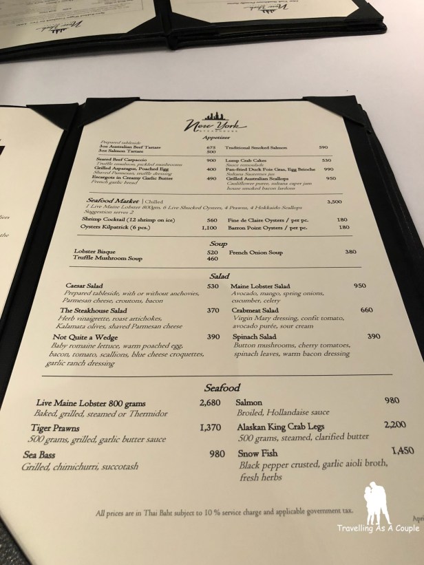 ร้านนี้คือ New York Steakhouse เป็นร้านเสต็กสไตล์อเมริกัน ร้านนี้อยู่ในโรงแรม JW Marriott Hotel ก่อนไปแนะนำให้จองไปก่อน ปล. ร้านนี้ไม่ให้เอาเด็กเล็กเข้าไปนะจ๊ะ เป็นเหมือน Policy ทางร้านเลย ว่าต้องเป็นเด็กที่โตหน่อยถึงจะเอาเข้าไปได้ ก็เข้าใจอ่ะนะ ว่าเด็กเล็กอาจจะไปร้องไห้ รบกวนแขกโต๊ะ อื่นๆ งั้นคราวนี้แม่กะพ่อขอหนีลูกไปกินสเต็กแปปนะครับ อิอิ (นานๆที เข้าโครงการฝากลูกไว้กะยาย)