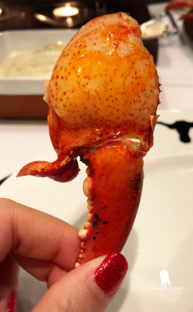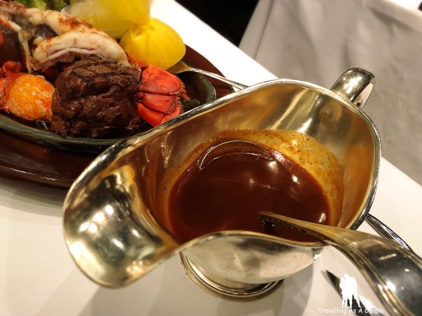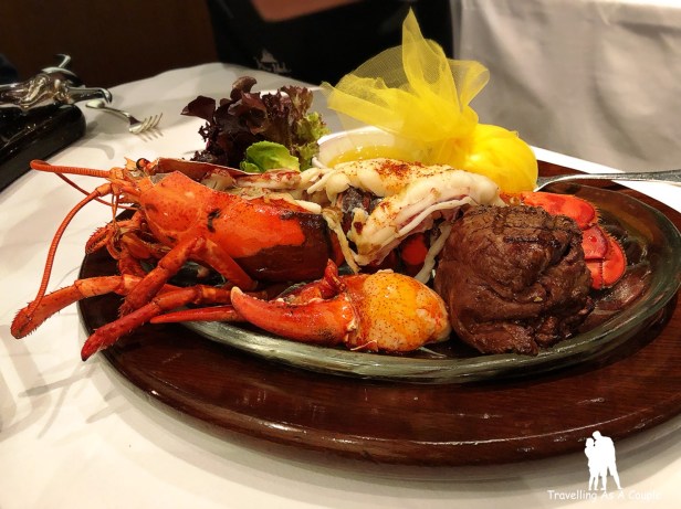 อีกหนึ่งไฮไลท์ สำหรับคนที่ปลื้มปริ่มกุ้งมังกร คือ US Prime Surf and Turf คือกุ้งมังกรสดๆ เนื้อหวาน อร่อย (ในเมนูใช้คำว่า Live Marine Lobster) เสิร์ฟมาพร้อมสเต็กเนื้อสันใน ที่นุ่มลิ้นละลายในปากมาก