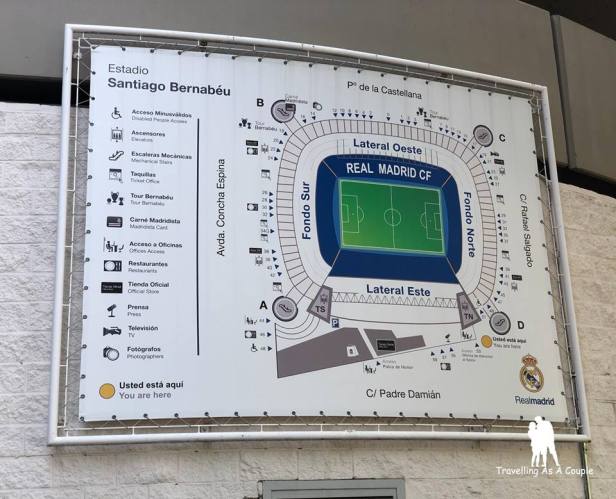 หาเรื่องเดินย่อยต่อ เพราะว่าอิ่มอืดมาก เราจะเดินทางต่อไปที่สนามฟุตบอล Santiago Bernabeu ซึ่งเป็นสนามแข่งของราชันตชุดขาว Real Madrid นั่นเอง ช่วงที่เราไปเป็นช่วงฟุตบอลโลก ทุกอย่างรอบสนามเลยเงียบสนิท