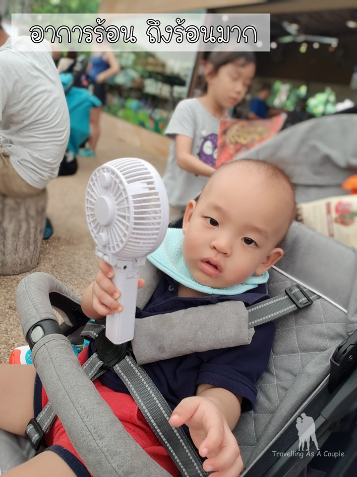 ในรูปนี้คือระหว่างที่พี่ควินน์เดินชมสวนสัตว์ ร้อนจนนางต้องร้องขอพัดลมเอามาถือเอง ถือแบบไม่ยอมปล่อยเลย เป็นทริปที่ต้องหาน้ำเย็นให้ลูกกินบ้าง เพื่อคลายความร้อน