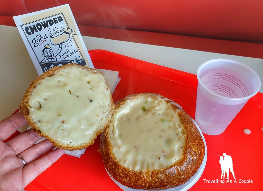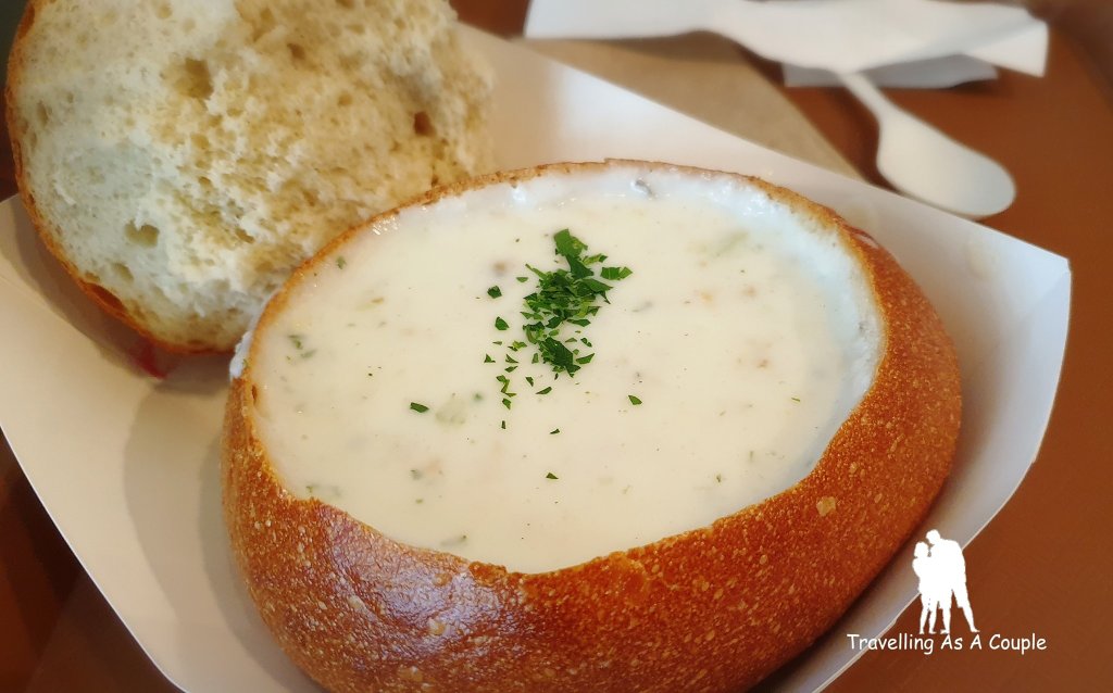 ร้านนี้มีซุปครีมหอยที่ใส่ในขนมปังก้อนกลมๆ เหมือนร้านอื่น แต่สำหรับเรา เราว่าซุปครีมหอยที่นี่ยังไม่เด็ดเท่าที่ควร ไม่ได้โดดเด่นมาก แถมราคายังแพงกว่าร้านอื่นๆ อีก