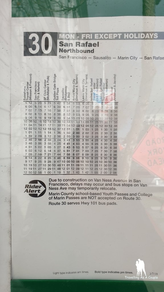การเดินทางมา Sausalito ก็มีให้เลือกหลายแบบ จะนั่งเรือ นั่งรถบัสมาก็ได้ เราเลือกที่จะนั่งรถบัสขาไป แล้วก็นั่งเรือ Golden gate Ferry ขากลับ เพื่อให้ได้บรรยากาศทั้งสองแบบ