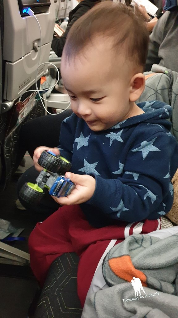 ตลอด 11 ชั่วโมง ก็กิน เล่นของเล่นที่เป็น Surprise toy ที่แม่เตรียมไว้ ดูคลิปการ์ตูน เอาจริงๆ เด็กเล็กก็ไม่ควรดูในจอโทรศัพท์เท่าไหร่หรอก แต่ในช่วงที่อยู่บนเครื่องแบบนี้ อะไรที่ทำให้ลูกสงบได้ ก็คงต้องผ่อนปรนมาบ้าง แต่ก็ต้องมีกติกาให้ชัดเจน