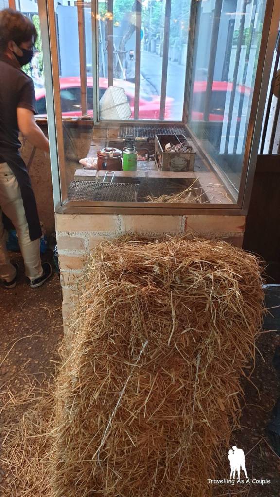 เรามากินตามคำแนะนำของเพื่อน ว่าร้านนี้น่าลอง เป็นร้านเล็กๆ ชั้น 1 มีโต๊ะอยู่ไม่ถึง 10 โต๊ะ เลย แต่เต็มไปด้วยอาหารที่ใช้วัตถุดิบคุณภาพมาก เน้นย่างอาหารด้วยฟาง ด้วยถ่าน ทำให้มีกลิ่นหอมที่เป็นเอกลักษณ์