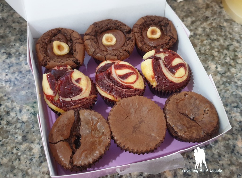 มีให้เลือก 3 รสชาติ • Bae Brownie มันคือ Dark Choc ผสม nutella รสชาติจะหวานนำนิดนึง• Red Velvet Cream cheese Brownie อันนี้คือดีงามมาก ด้วยความที่มีครีมชีสแทรก เลยจะมีความมันเค็มๆ ของครีมชีส ตัดเลี่ยนได้ดี • Fudge Brownie bite Brownie ใครเป็นแฟนช็อคโกแลต ควรลอง กัดไปช็อคโกแลต เต็มปากเต็มคำ เอาไปอุ่นก็อร่อย กินแบบเย็นๆก็ดี