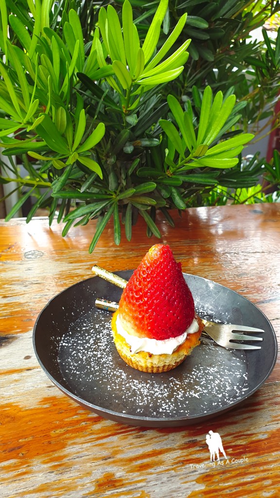 เมนูแนะนำที่เรากินแล้วชอบคือ #StrawberryMiniCheeseCake เป็นชีสเค้กที่รสละมุนมาก มาพร้อมสตรอเบอรี่ลูกใหญ่จนแทบจะใหญ่กว่า ชีสเค้กไปเลยจ้า