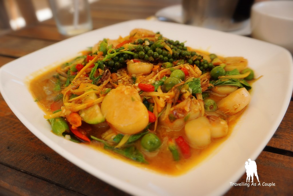 ในส่วนของอาหารความสดต้องยกให้เลย เค้ามีห้องอาหารทะเลเป็นให้เราเลือกไปทำอาหารได้ มีปู King Crab ด้วย ยังดิ้นอยู่เลย ล๊อบสเตอร์ กั้ง กุ้ง ปลา มีครบ รับประกันในความสด เพราะตักมาจากน้ำก็คือยังดิ้นอยู่ เรื่องรสชาตินี่ก็คือโอเคเลย สั่งแกงส้ม ผัดฉ่า ก็คือจัดจ้าน ไข่เจียวกุ้งก็คือกุ้งมาแน่นๆ ราคาก็ไม่ถูกไม่แพงกลางๆ เมื่อเทียบกับบรรยากาศร้าน ก็ถือว่าโอเค เสาร์อาทิตย์คนอาจจะเยอะหน่อย ถ้าไปอาจจะต้องรอนิดนึง แต่ระบบจัดการร้านค่อนข้างดี รอไม่นาน