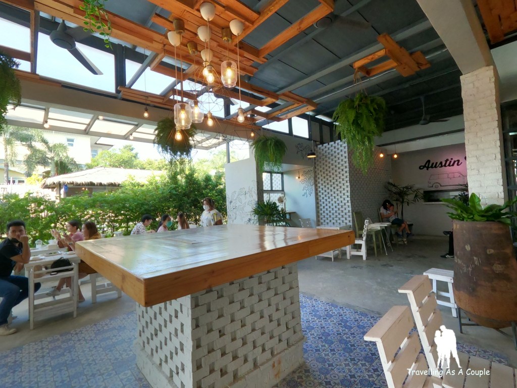 Austin Cafe เป็นคาเฟ่ที่ให้บริการทั้งอาหารคาวอาหารหวาน ตกแต่งสไตล์ฮาวาย นอกจากคาเฟ่แล้วก็ยังมีบาร์ให้เราไปนั่งจิบค๊อกเทล จิบเบียร์ชิลๆได้อีกที่นี่มีมุมถ่ายรูปเยอะเลย แต่ที่ชอบสุด คือซุ้มนั่งริมทะเล โดยเฉพาะช่วงพระอาทิตย์ตกดิน บรรยากาศคือดีมาก แต่ต้องจองนะ ไม่งั้นอด