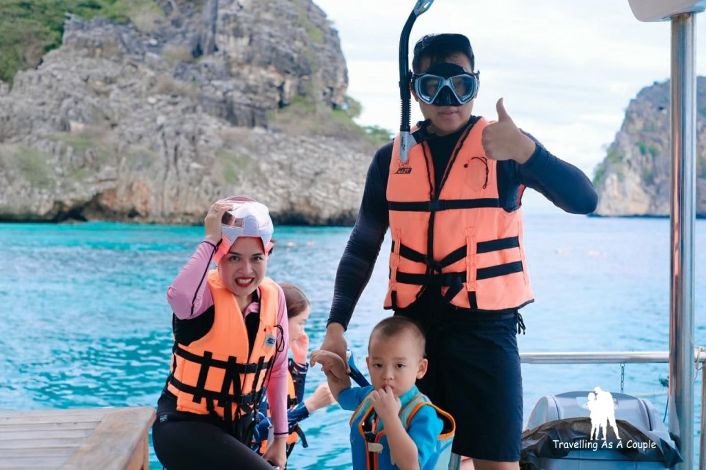 ทริปนี้เลยสอนให้รู้ว่าเด็กน้อย 3 ขวบ อาจจะเด็กเกินไปสำหรับกิจกรรมดำน้ำตื้นแบบนี้ แม้ว่าเค้าจะคุ้นเคยกับสระว่ายน้ำ แต่กับน้ำทะเลมันไม่เหมือนกัน มันมีคลื่นที่ทำให้เด็กน้อยตกใจกลัว จนเกาะแม่ไม่ยอมปล่อย เอาไว้โตกว่านี้อีกนิดแล้วเราค่อยมาใหม่เนาะ