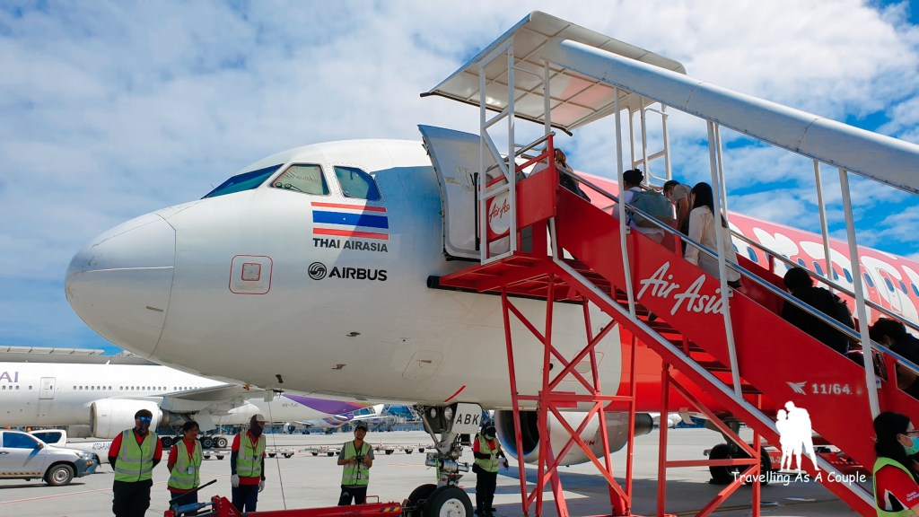 เราเดินทางด้วยสายการบิน Thai Airasia จากสนามบินสุวรรณภูมิ เลือกสนามบินนี้เพราะว่าใกล้บ้านมากกว่า ใช้เวลาประมาณ 1 ชั่วโมง 30 นาทีก็ถึงที่สนามบินกระบี่