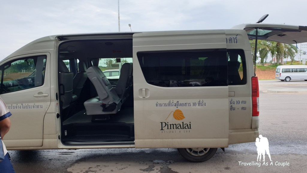 รถตู้คันนึง นั่ง 4-5 คน ไม่เบียดเสียดแน่นอน ยังสามารถมี Social distance ได้ พนักงานจะอธิบายก่อนเราขึ้นรถตู้ว่าจะใช้เวลาเดินทางนานเท่าไหร่ จากสนามบินเราต้องนั่งรถตู้ไปประมาณ 45 นาที จะไปถึง Pimalai Jetty ซึ่งจะเป็นท่าเรือส่วนตัวที่จะพาเราไปถึงเกาะลันตา แล้วต่อรถตู้อีก ประมาณ 40 นาที จะถึงโรงแรม เบ็ดเสร็จใช้เวลาจากสนามบินกระบี่ ถึงโรงแรมอีกประมาณ 2 ชั่วโมง