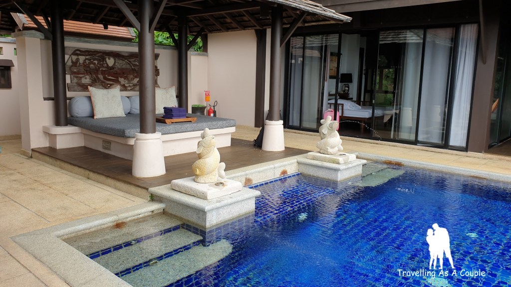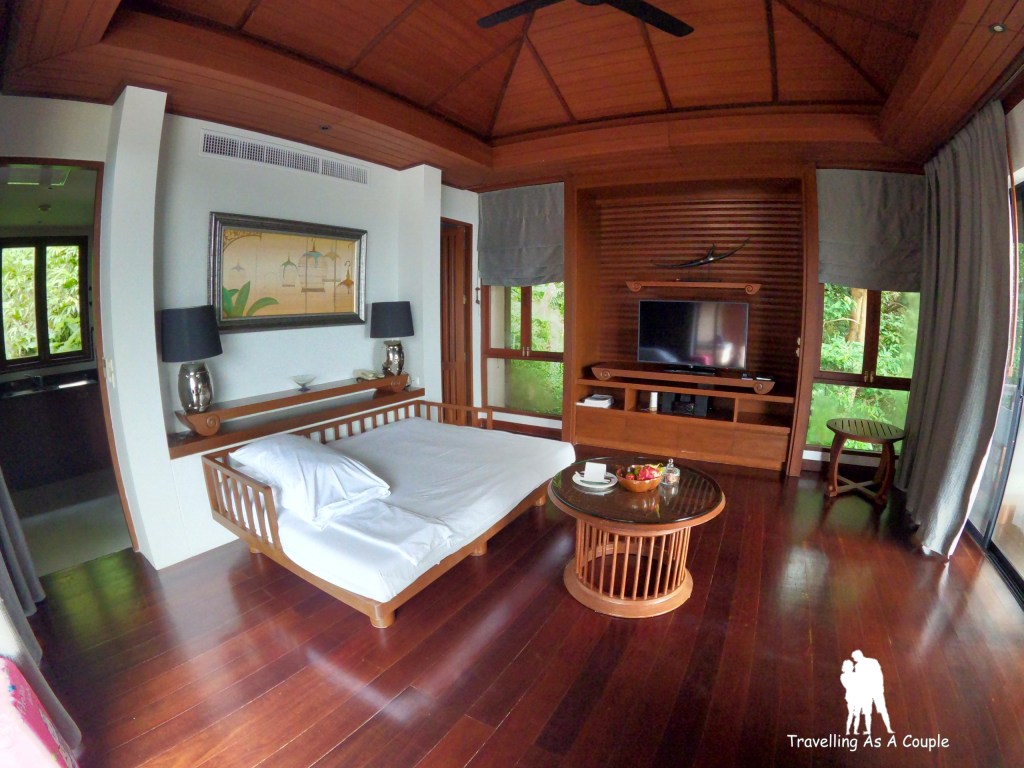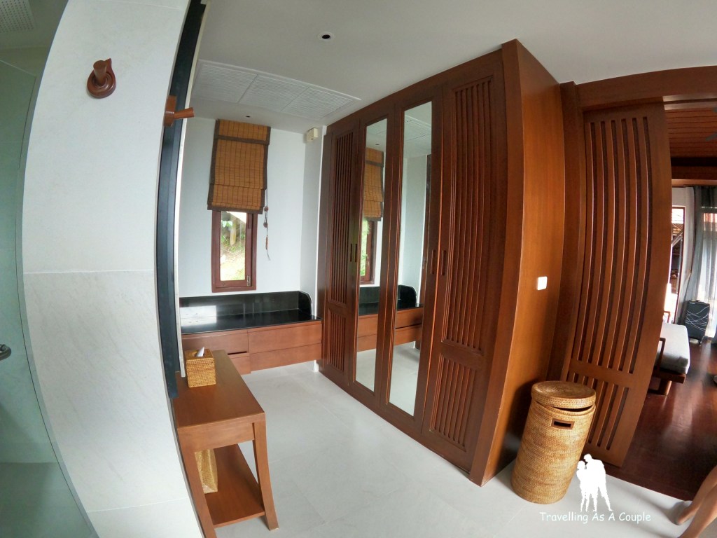 มาถึงแล้วที่พักของเรา Pool Villa Hillside กว้างมากจ้า กว้างเกินกว่าจะอยู่กันแค่ 3 คนพ่อแม่ลูก ห้องจะแบ่งออกเป็น 2 โซน โดยมีสระว่ายน้ำเป็นตัวกั้น ด้านขวามือจะเป็นโซนห้องนอนที่กว้างมาก