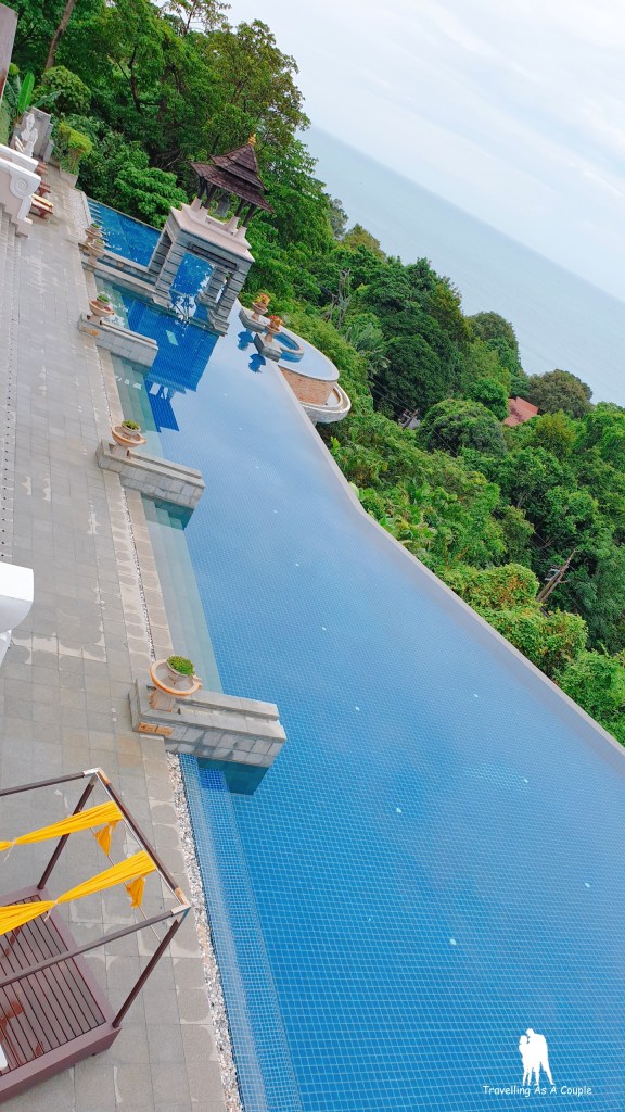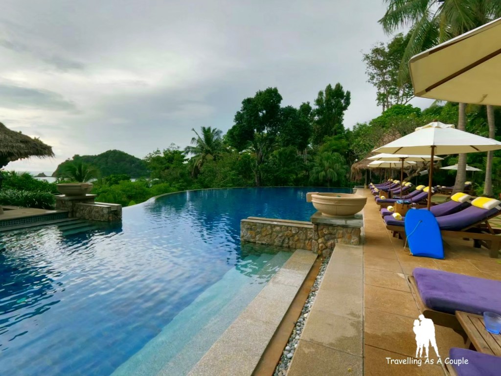 นอกจากสระว่ายน้ำที่อยู่ในห้องแล้ว ที่ฝั่งของ Pool Villa ยังมีมุมที่ถือว่าเป็น Land mark ของ Pimalai Resort นั้นก็คือ Infinity pool ที่มองไปจะเห็นวิวภูเขาและทะเลสวยงามมาก ยิ่งตอนพระอาทิตย์ใกล้ๆตกดิน ไม่ควรพลาดมุมนี้เลย