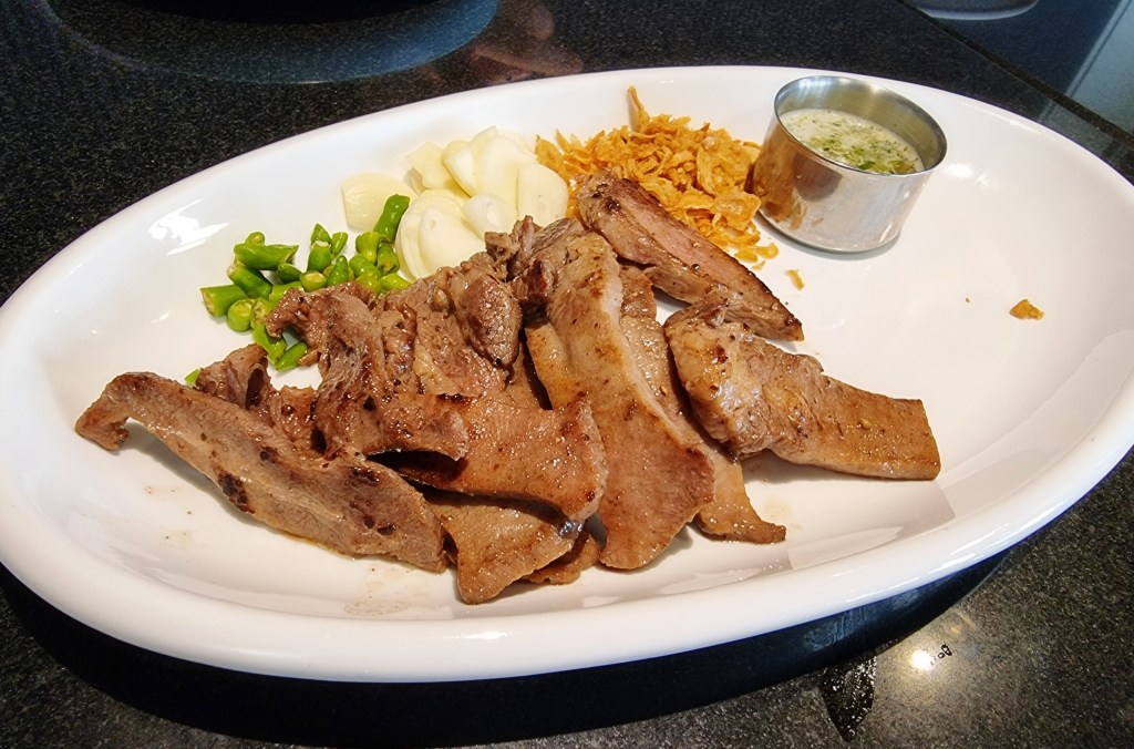 #ลิ้นวัวอาเจนติน่าย่าง เป็นคนไม่กินลิ้นวัว เพราะมันชอบเหนียวแต่คุณสามีคือชอบมากก ครั้งนี้สั่งมา มันหอมมาก โรยมาด้วยเกลือ พริกไทย เลยต้องลองนิดนึง …. มันอร่อยยย ไม่มีความเหนียวเลย มีความกรุบๆ สู้ฟัน แต่ไม่เหนียว จิ้มคู่น้ำจิ้มทะเล หยุดกินไม่ได้เลยจ้า
