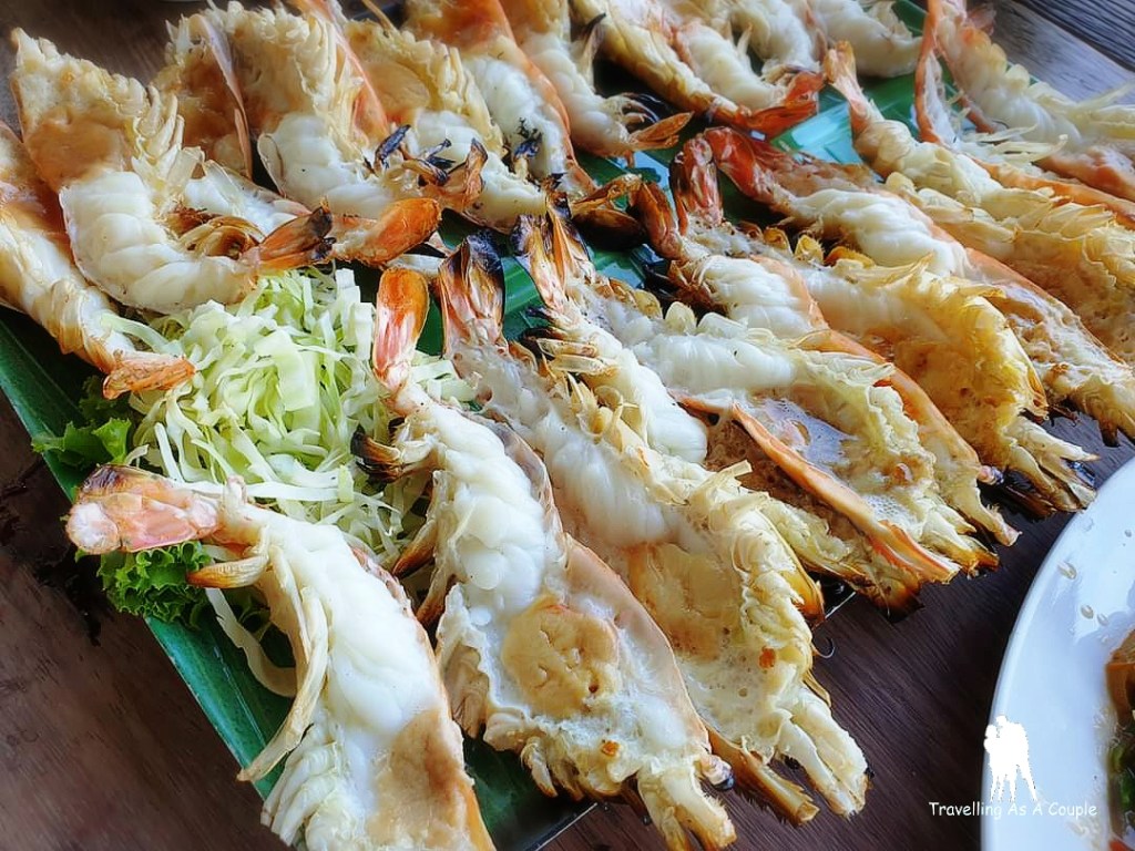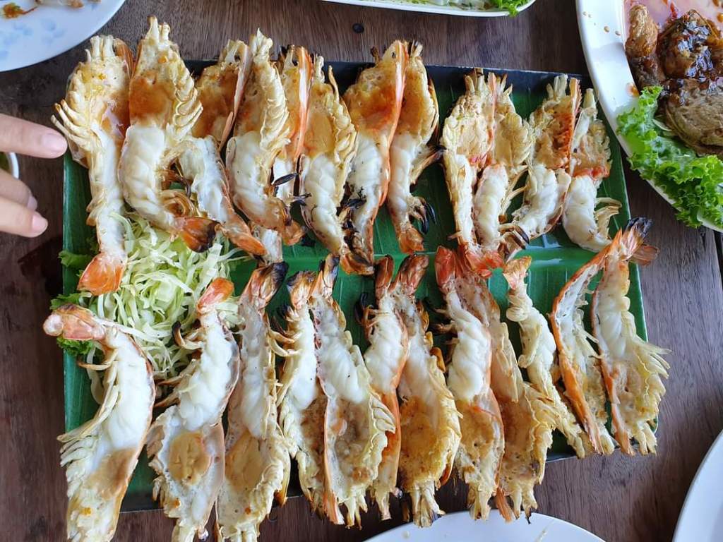 เริ่มอาหารจานแรก อยากมากินกุ้งเผาแปดริ้วแล้วเราจะไม่สั่งกุ้งเผาได้ยังไง เราเลือกแม่น้ำเผา 1 กิโล เราเลือก Size ที่ไม่ใหญ่มาก เพราะว่าชอบที่เนื้อกุ้งจะไม่เหนียวมาก ได้มาประมาณ 10 กว่าตัว