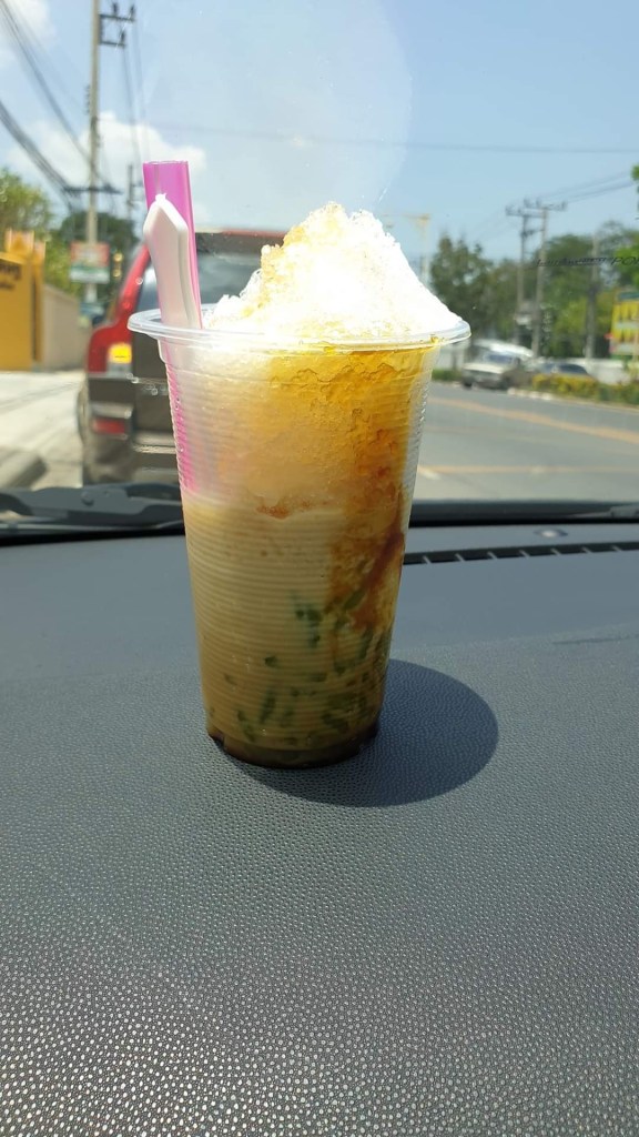 ลอดช่องน้ำตาลข้น ชอบที่ปั่นน้ำแข็งมาแบบละเอียดยิบ น้ำตาลข้นหอมมาก รักเลย ตัวลอดช่องจะเป็นแบบเด้งๆนิดนึง คนละแบบกะลอดช่องวัดเจษ แก้วนี้มาในราคา 35 บาท