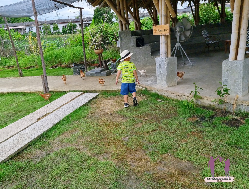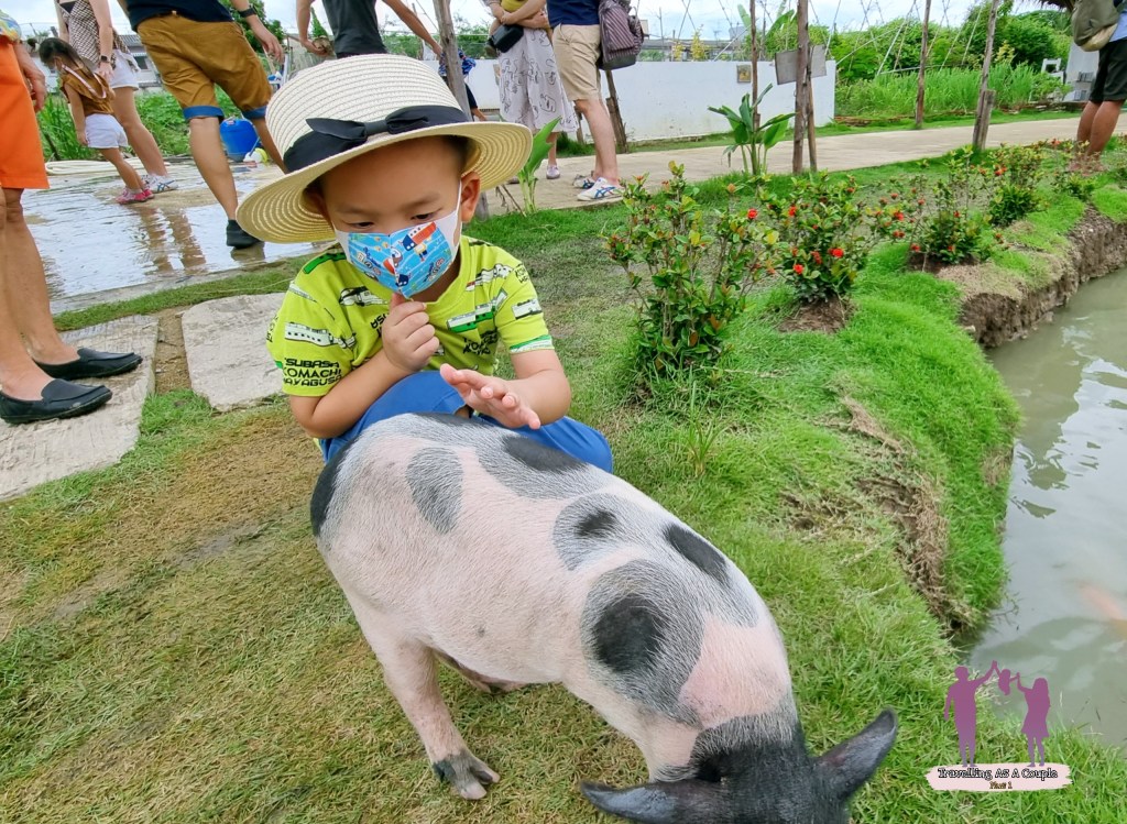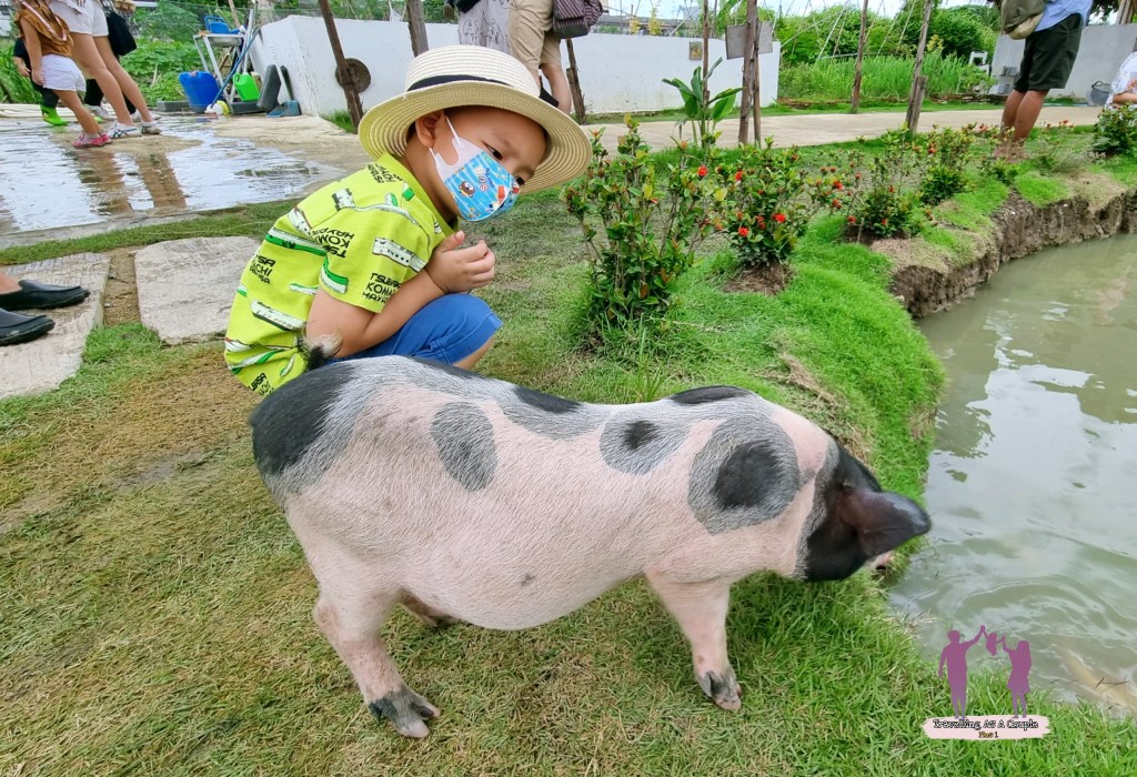 คิดไม่ออกว่าจะพาลูกไปให้อาหารสัตว์ที่ไหน ที่นี่ก็เป็นอีกหนึ่งตัวเลือกที่น่าไป พี่ควินน์คือสนุกกับการวิ่งไล่จับไก่มาก อยากเล่นกับไก่ แต่ไก่ไม่เล่นด้วยถ้าจะไปแนะนำตอนเช้าไก่ยังไม่อิ่ม ไม่งั้นมันจะเมินเรา สุดท้ายขอแม่ลองจับหมู ด้วยความสงสัยว่าผิวหมูเป็นยังไง แม่เลยบอกลองเลยลูกแล้วค่อยไปล้างมือ ลุยเลยยย