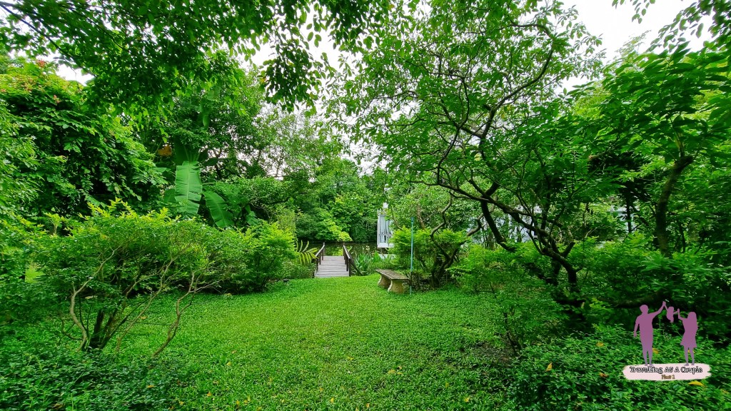 เวลาเดินเข้ามาในนี้ เหมือนเราเข้ามาอยู่ในป่า ที่ยังมีธรรมชาติ มองไปทางไหนก็เจอแต่พื้นที่สีเขียวรอบตัวไปหมด เป็นคาเฟ่ที่ถือได้ว่าบรรยากาศดีเลยทีเดียว เดินข้ามสระพานมาก็จะเจอคาเฟ่แล้ว ร่มรื่นมาก