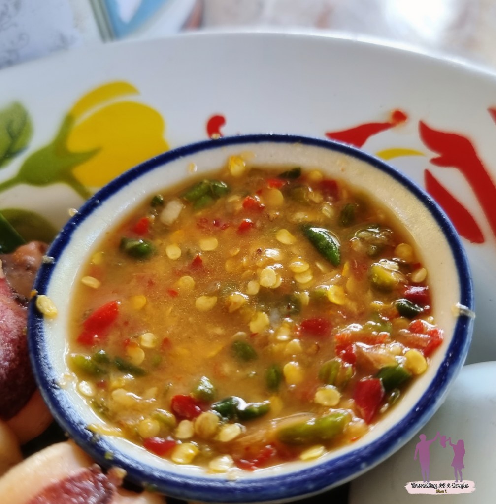 น้ำจิ้มทะเลที่นี่ก็ไม่เหมือนที่อื่นสีของน้ำจิ้มจะเป็นขาวๆ แต่รสชาติบอกได้เลยว่าดี