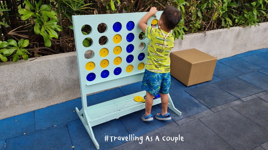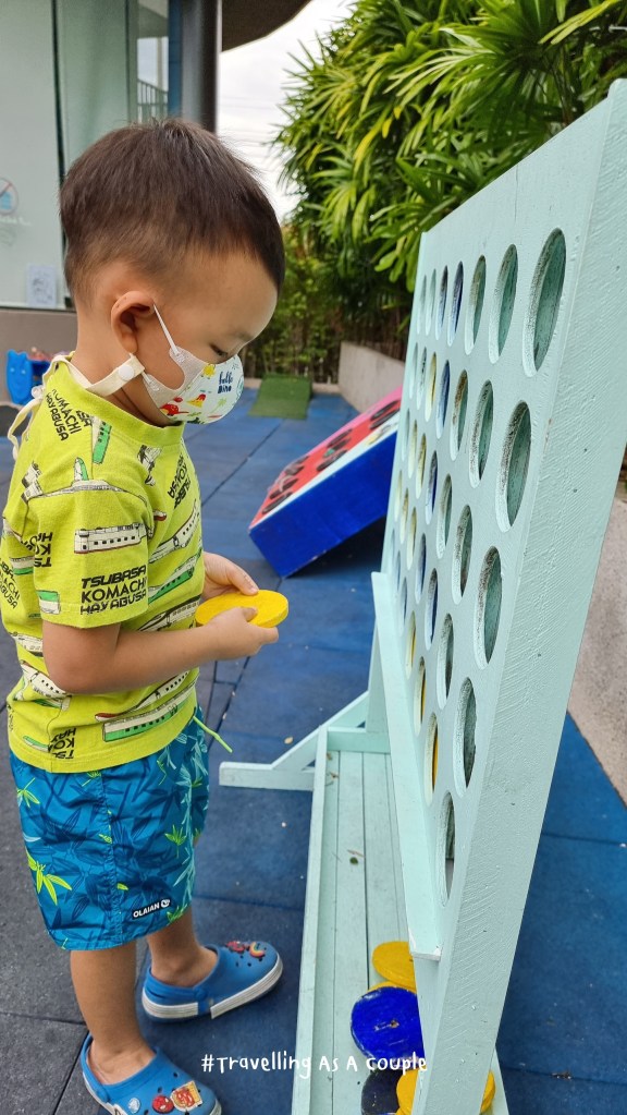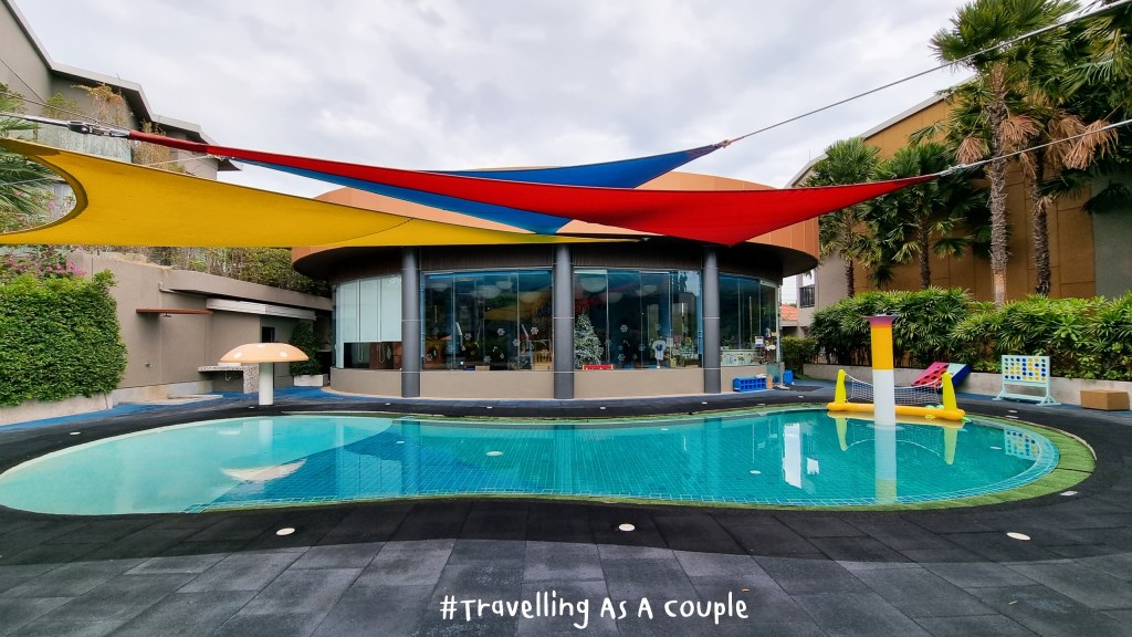 ด้านนอกนอกจากจะมีสระว่ายน้ำสำหรับเด็กแล้วรอบๆสระก็ยังมีเกมส์รวมถึงของเล่นให้เด็กๆได้ทำกิจกรรมแบบ Outdoor