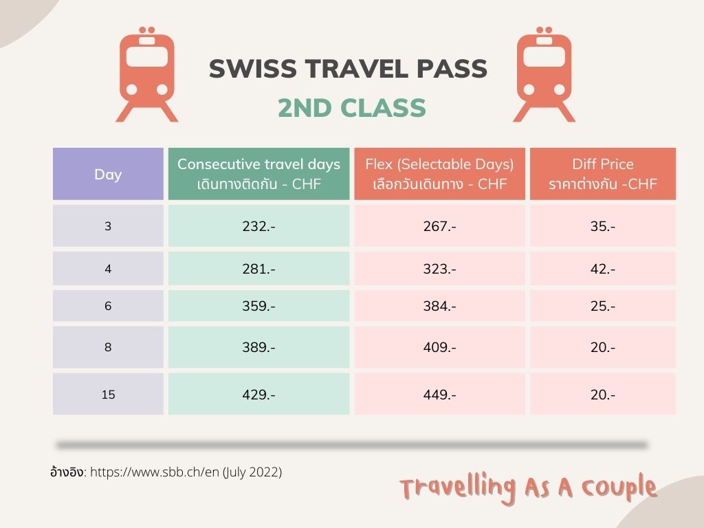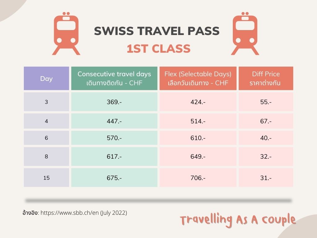 เราทำตารางเปรียบเทียบราคาการเดินทาง ระหว่าง Consecutive Travel Day vs Flex Pass (อ้างอิงจาก website SBB : July 2022) ลองไปดูกันว่าแบบไหนที่เหมาะกับเรา