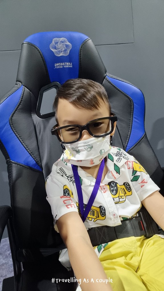 ด้านในจะเป็นที่นั่งเหมือนเราดูหนัง 4Dmax ตามโรงหนังเลย แล้วที่นี่เค้าบอกว่าเค้าเป็นโรงหนังแบบ 7 มิติ เจ้าหน้าที่จะเข้ามาแนะนำว่าการดูภาพยนตร์นั่น เก้าอี้จะมีการขยับและอาจจะมีเสียงดังให้เด็กตกใจ ถ้าเด็กเล็กแนะนำให้นั่งกับผู้ปกครอง และถ้าเด็กๆไม่โอเค ให้ยกมือบอกเจ้าหน้าที่ ห้ามลุกขึ้นมาเอง เพราะจะเกิดอันตรายได้ ระหว่างที่เก้าอี้ขยับไปมา กิจกรรมนี้อาจจะต้องให้ผู้ปกครองประเมินเด็กๆก่อนที่จะเข้าร่วมกิจกรรมว่าน้องจะโอเคไหม