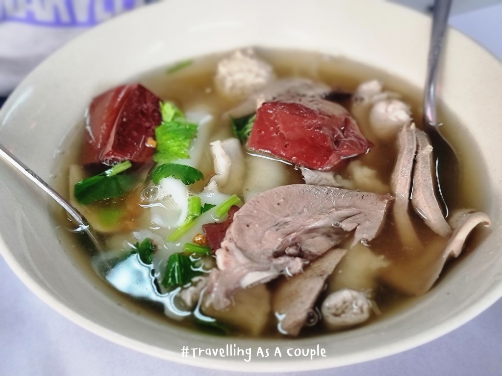 สะดุดตาที่ร้านตกแต่งเป็นสีแดงสด เราก็เป็นคนชอบคนต้มเลือดหมู ก๋วยจั๊บ หมูกรอบ อยู่แล้วด้วย มีเหรอที่เราจะพลาด