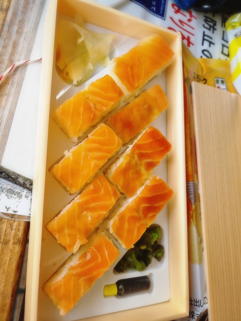 มื้อแรกที่ญี่ปุ่นต้องซื้อที่สภานีรถไฟ เพราะไม่มีเวลามานั่งกินร้านอาหาร ข้าวซูชิแปลกไปจากที่เคยกินที่ไทย แต่มันอร่อย