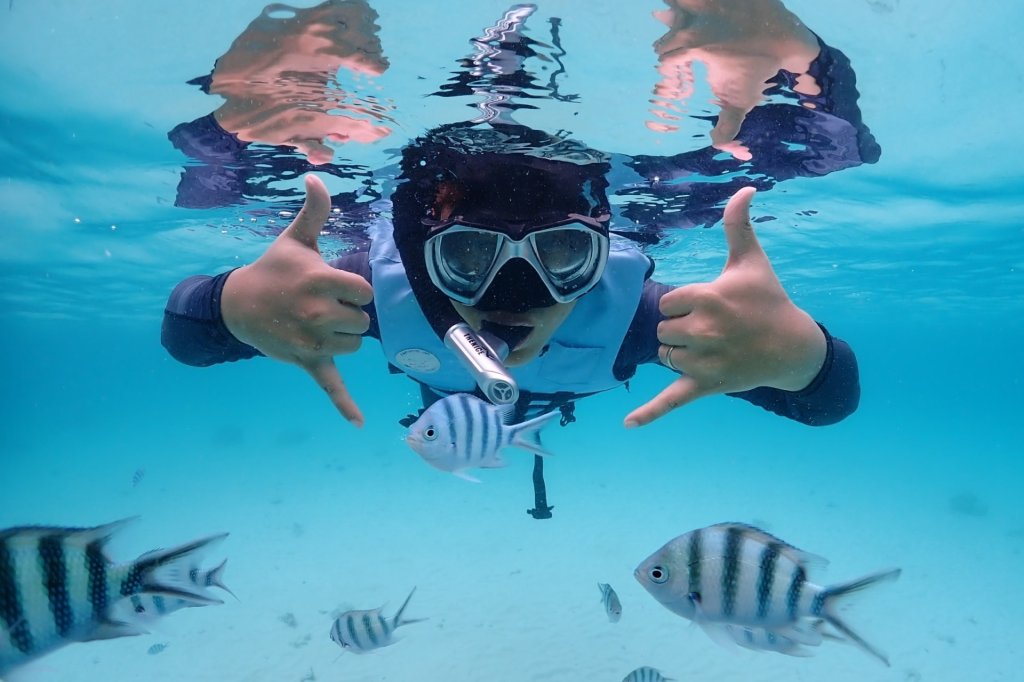ใครที่ดำน้ำไม่เป็นไม่ต้องกลัว เพราะว่าเค้าจะพาเราไปสอนดำน้ำ และการใช้หน้ากากเบื้องต้นที่บริเวณ์น้ำตื้นก่อน เพื่อให้เราได้คุ้นชินกับการใช้หน้ากาก ก่อนจะพาไปบริเวณที่เป็นน้ำลึก