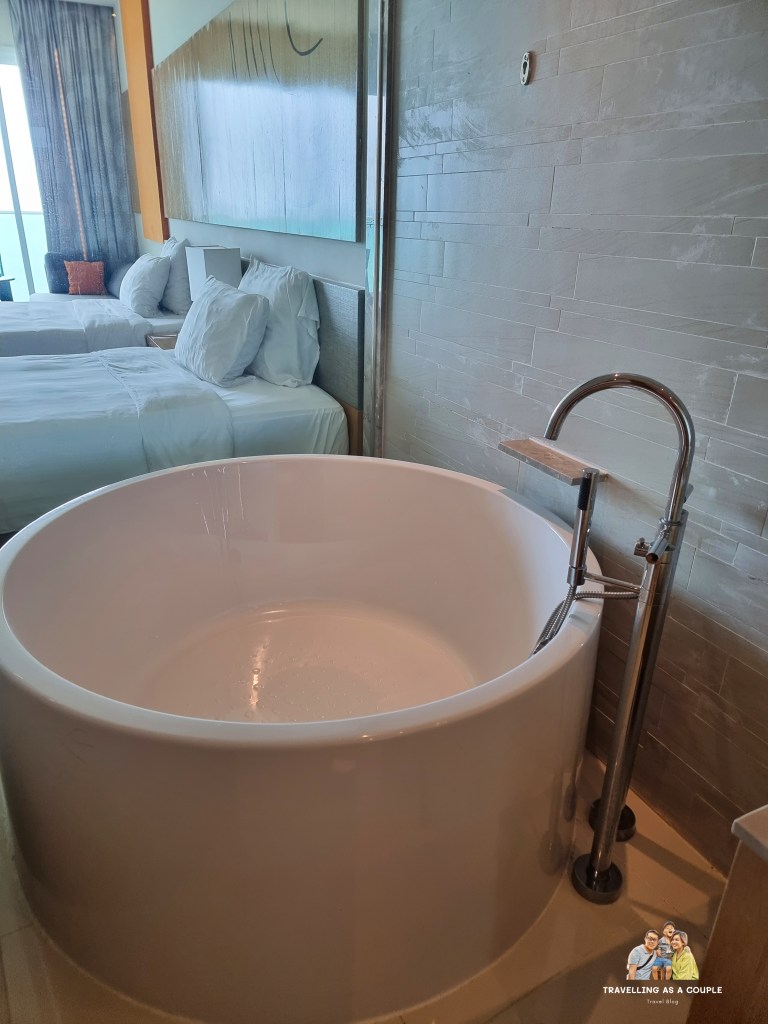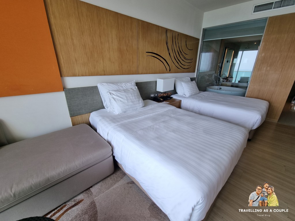 พามาดูห้องแบบ Deluxe Seaview ก่อน ห้องแบบ Deluxe จะเป็นห้องที่นอนได้ 2 คน + เด็กน้อยอีก 1 คน กำลังสบายๆ ไม่อึดอัดมาก การจัดวาง Layout ของห้องทำได้ดี ไม่ได้รู้สึกอัดอัด ห้องน้ำกว้างมีอ่างอาบน้ำขนาดใหญ่ในห้อง ห้องหันหน้าออกทะเล วิวทะเลคือดีงาม แถมด้วยวิวสระว่ายน้ำแบบกว้างมากๆ